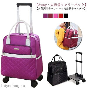 旅行、出張、ショッピングに最適な2wayスーツケース!両手が自由で移動も楽々!大容量なので、旅行はもちろんアウトドアや防災バッグ、または入院の際のバッグとしてなど幅広く活躍してくれる 旅行中もおしゃれを楽しめる...
