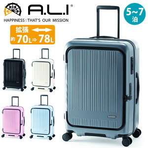 【A.L.I 正規取扱店】容量:70L (拡張機能+12L)|滞在目安:5〜7泊程度|ストッパー機能|HINOMOTO静音キャスター|YKK社製 防犯ダブルコイルファスナー|TSAダイヤルロック