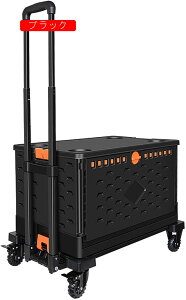 コンテナボックス 折りたたみ収納ボックス コンテナキャリー 折りたたみ キャスター付 キャンプ用カート ストッパー付き 軽量 台車 コンテナカート ふた付 買い物カゴ 運搬 本を運ぶ 引っ越し用 (55L:53x36x29.5cm,ピ...