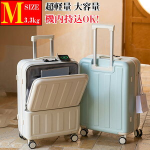スーツケース キャリーケース キャリーバッグ Mサイズ 53L 前開き フロントオープン フロントポケット USBポート付き 2泊3日 修学旅行 4泊5日 超 軽量 軽い 4輪 かわいい おしゃれ おすすめ...