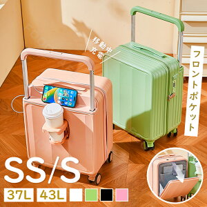 スーツケース フロントオープン ファスナータイプ Sサイズ 前ポケット USBポート付き キャリーケース 軽量 トップオープン 前開き キャリーバッグ 送料無料 小型 ビジネス機内持ち込み 出張 旅行...