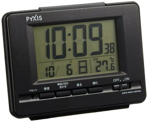 セイコークロック Seiko Clock セイコー クロック 目覚まし時計 電波 デジタル カレンダー 温度 表示 PYXIS ピクシス 黒 メタ