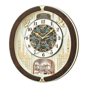 毎正時のダイナミックなパフォーマンスが魅力シックなブラウンを基調としたカラーリングがモダンリビングにマッチします【仕様】●枠材:プラスチック枠(薄金色パール塗装)・前面:ガラス●サイズ・重さ:443×405×98mm 2.6kg●電池:単2