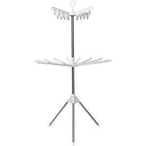 ■サイズ・色違い・関連商品■高さ約143cm【当ページ】■高さ約180cm■商品内容室内用のパラソル型物干し。幅35cmまでのタオルが約16枚掛けられます。上段はピンチハンガーなので、靴下などの小物が干せます。ピンチハンガーは取り外して竿