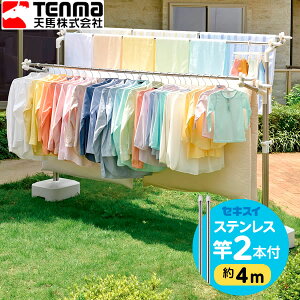 PORISH物干し台 PS-28」と「セキスイ 物干し竿(4m) STN-4N」のセット。物干し竿付きですぐに干せる!天馬のブロー台付き物干しスタンド(左右)と、セキスイの物干し2本のセット。