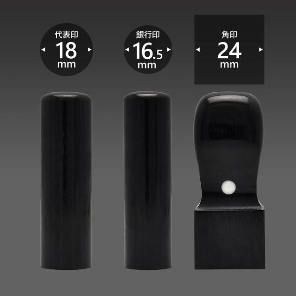 黒水牛法人印鑑3本セット【会社印】【代表印】【銀行印】【法人印】【代表者印】。
