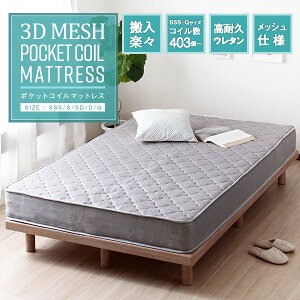 3Dメッシュ ポケットコイルマットレス (スモールセミシングル) 【サイズ】(cm) SSS80 : 80 × 195 × 17 【梱包サイズ】 (cm):圧縮ロール SSS80 : 27 × 27...