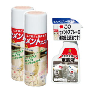 商品名 セメントスプレー 2本セット 定着液1本付き 商品特徴 自宅の外壁やカーポート、その他コンクリート部分のクラック(ヒビ割れ)を自分で補修できるスプレーです。 経年劣化や強い衝撃を受けてヒビ割れてしまったコンクリートの補