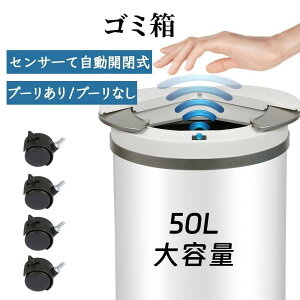 プーリなし自動ゴミ箱、50L、円形、自動開閉式、45リットルゴミ袋、互換可能、ステンレス製、蓋横開き式デザインは精巧、防臭、静音、