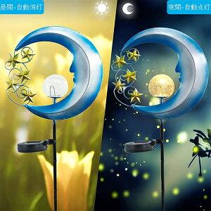 【ソーラーライト】月、星とひび割れたようなガラス球のデザインを施した芸術的なライトは和風の庭にも洋風の庭にも相性抜群!夜になると、ガラス球は点灯し、光が照らします。これだけで、歩道、芝生、庭におとぎ話のような美しさと