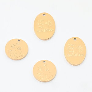 サイズ:【A】約12×17mm【B】約13mm 入数:1ヶ/パック 素材:ステンレス製(SUS304) 重さ:【A】約1.7g/パック【B】約1.5g/パック ステンレス製メタルチャーム オーバル メッセージ 花 電気メッキ加工 S...