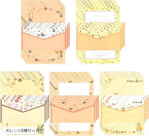 レター 手紙 封筒 便せん ポストカード メッセージ 写真サイズブランドXPデザインカラーオレンジ5種セット上品でエレガントな花や木々、小...