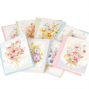 moin moin メッセージ カード カード+中紙+封筒 8種 アソート バラエティ セット | ドライフラワー 花束 花 フラワー サンキュー ありがとう 誕生日バースデー グリーディング 豪華 ラインスト【サイズ】...