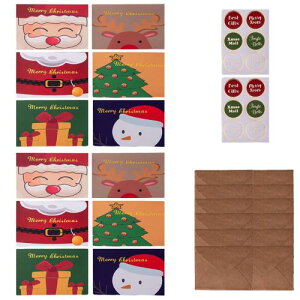 ? 【セット内容】:クリスマスカード*12枚(6種類ずつ2枚)、封筒*12枚、シール*2ページ。 ? 【カードサイズ】:11.5*8.5cm(2つ折り状態)、13*16cm(展開状態)。 【封筒サイズ】:12cm*9cm。 ? 【シー...