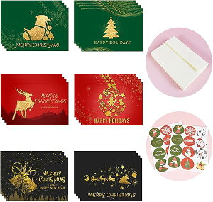 ■商品説明■ クリスマスカード 6種 24枚入り 封筒付き シール付き グリーティングカード メッセージカード クリスマス カード 祝いカード 挨拶 感謝状 お礼 かわいい クリスマスツリー柄 トナカイ柄...