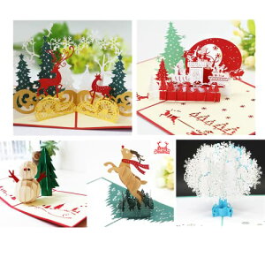 グリーティングカード ポップアップ Thank you カード 5枚 (5種タイプB) 送料無料 サイズ約15x15cm、5枚セット、5種デザインクリスマスカード。カードの裏面は綺麗な3D切り絵が...