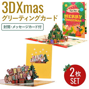 【2種類セット】クリスマス カード セット christmas メッセージカード グリーディングカード ギフトカード Xmas ギフト クリスマスカード ラッピング 大量 かわいい ・開くとサンタやツリーが飛び出す!3Dポップアップ仕...