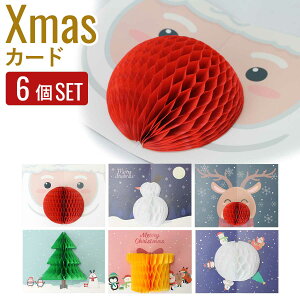【6種類セット】クリスマス カード セット christmas メッセージカード グリーディングカード ギフト クリスマスカード Xmas ギフトカード ラッピング 大量 かわいい ・サンタの鼻やクリスマスツリーが立体的に飛び出すユニ...
