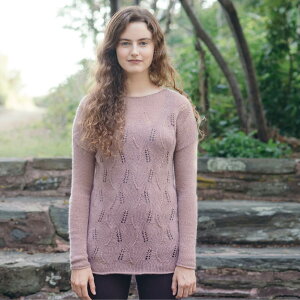 とっても軽い毛糸アルパカレジェーログラデーションで編むセーターのニットキット(編みものキット) 毛糸と無料編み図付きの着分セットです リーフ柄が素敵な超ゆったりデザインのプルオーバーです ■カラー:116番4玉(掲載作品)...