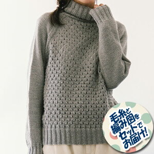 裄丈約76.5cm ●デザイン:風工房 糸と編み図をセットでお届けお届けいたします。 ヨークの部分にアラン模様が入ったセーター。ヨーク下はメリヤス編みで編みやすく、シンプルに。日常のコーディネートにも似合います...
