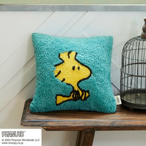 スヌーピーと仲間たちの 棒針編みで作るクッションカバー ナイロン100%のファーヤーンで、ソフトな手触りとボリューム感がある「TEDDY(テディ)」の糸をメインに使用して、棒針編みの編み込み模様でスヌーピーのクッションカバーが作れ