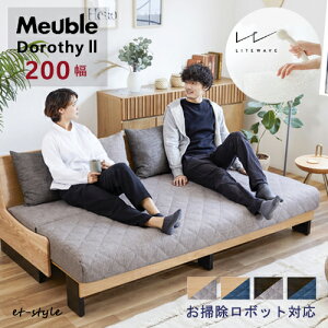 ソファベッド ごろ寝ソファ200 サイズ W1990×D825-1165xH760-690。布張り 3人掛け 高反発 お掃除ロボット対応 デザイン おしゃれ。