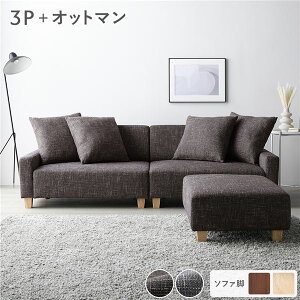 ふかふかの極み! カウチソファー オットマン付き ソファーセット 高級 ソファ 3人掛け用 三人 大きめ 大人数 コーナー 4人掛け 北欧 布地 オットマン 応接 リビング 肘付き ゆったり。