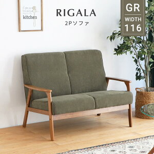 商品名 リガラ 2Pソファ GR カラー [ グリーン](全1色) 素材 張地:ポリエステル、中身:ウレタンフォーム、芯材:木枠・積層合板、脚部:ラバーウッド(ラッカー塗装) 生産地 マレーシア サイズ...
