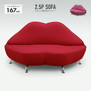 ソファー 2人掛けソファー 2人用 布張り 幅167cm 脚付き レッド パープル 二人掛け 二人用 2Pソファー ダブルソファー ラブソファー かわいい 唇型