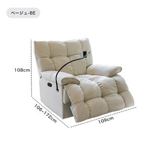 座椅子 座いす リクライニング 1人掛けソファー リクライニングチェアー フロアチェア リビングチェア リラックスチェア 4way 42段階 肘掛け クッション付き サイドポケット ハイバック