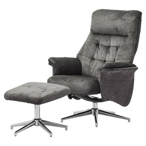 商品について ■セット内容 本体×1 スツール×1 ■商品の特徴 背と肘のデザインがアクセントになっているリクライナー。 体重移動で簡単にリクライニングすることができます。 ■主な仕様 リクライニング機能付き 座面回転式 ■サイズ [本