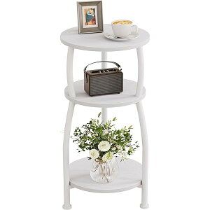 サイドテーブル おしゃれ 3段 丸型 ベッドサイドテーブル 北欧風 木製 ソファ コーヒー ナイトテーブル 収納棚付き レトロ 組立簡単 省スペース リビング 寝室 小型ブランド色ホワイトモデルTHF...