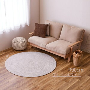 サステナブルな裂き織 やわらかくさらっとしたタッチのインド綿ラグマット。『裂き織』と呼ばれる製法で、製品を作る際に残った生地の切れ端などの端材をアップサイクルした、サステナブルな1枚です。 生産地 インド サイズ 直径約90cm
