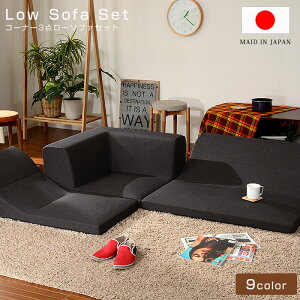 商品について ロータイプのコーナーソファ3点セットです。4人ゆったり座れるリビングソファとして、セパレートでこたつの座椅子として、背を倒せばゆったり寝そべるベッドソファとして、場面を選ばず大活躍。座面が低いので...