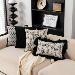 クッションカバー 北欧風 リビング ソファ 寝室 ベッドルーム 提花 枕カバー 植物柄 ポリエステル 黒 ブラック インスタ映え 45 30・カテゴリ: 抱枕カバー・素材: ポリエステル・柄: 植物・花...