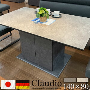 ダイニングテーブル 収納 (Claudio-クラウディオ) 収納付き 大理石調 【サイズ】 食卓テーブル :幅140×奥行き80×高さ70cm 天板厚3cm 【材質】 天板メラミン:ドイツ製メラミン 収納部分...