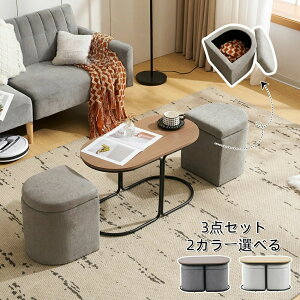 テーブル センターテーブル 完成品 スツール2個付き 収納付き サイドテーブル 北欧風 ソファテーブル リビングテーブル ローテーブル モダン 組立不要【ブラウン】Product Featurespoint01...