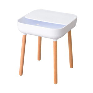 全体的に丸みを帯びたデザイン性のあるフォルムのサイドテーブルです。天板は外すことが出来るので容易に収納が行なえます。また、中の底板箇所にコード穴があるため照明やスマートフォンの充電器コードを通すことができます。サイド
