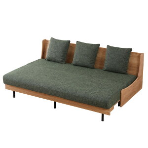 外寸:210×81×80cm。素材フレーム:ウォールナット無垢(節有)、ウレタン塗装。座面・背もたれ:ファブリック、ウレタンクッション、ヒノキすのこ床板。耐荷重300kg。