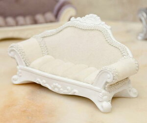 【メーカー直送品:宅配便発送(代引× 後払× 同梱× ラッピング× 対応不可)】 ソファのデザインがユニークなリングホルダーです。 甘いカラーと大人っぽいアンティーク調の仕上げがエレガント。 布部分はベルベットで高級感があります