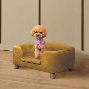ペット用 ベッド イエロー ペットソファ ボタン留め ファブリック 低い 低め 木脚新しいペットソファが、あなたのお部屋に優雅な雰囲気をプラスします。こちらのペットソファは、ペットと