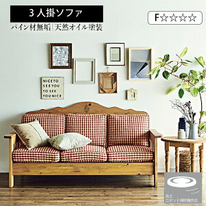 かわいいチェック柄の3人掛ソファ 【サイズ(cm)】幅185×奥行85×高さ96/座面の高さ42。 【仕様】パイン材無垢 オイル塗装 組立品。どこか懐かしいデザインのカントリー調家具。使い込むほどに愛...