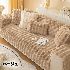 【保温性が優れ】厚手でふわふわ・もこもこの肌触りであたたかい、秋冬用のソファーカバーです。寒い季節は冷たい感じる合皮のソファーなどに掛ければ、いつものソファーがとびきりのリラックススペースに! 【滑り止め...