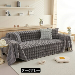 【保温性が優れ】厚手でふわふわ・もこもこの肌触りであたたかい、秋冬用のソファーカバーです。寒い季節は冷たい感じる合皮のソファーなどに掛ければ、いつものソファーがとびきりのリラックススペースに! 【滑り止め...