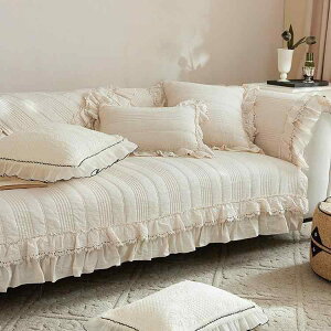 【同柄のクッションカバーが付属します】マルチカバー 防塵カバー ソファカバー ソファタオル 飾りフリル付き おしゃれ 多機能 犬猫対策 ほこり防止 キズ防止 汚れ防止 洗える 滑り止め 大判 長方形 可愛い...