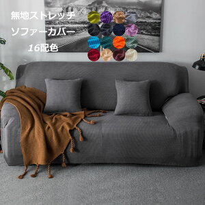 ソファカバー 無地 ストレッチ 伸縮性 肘付き 一体型 マルチカバー 厚手生地 北欧風 滑り止め 防塵 ペット対策 洗濯可 多色選択
