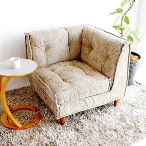 ファブリック生地ならではの優しい素材感は、触り心地が良く、温かみのある印象を与えます。1人用のコーナーソファは、通常の1人掛けソファよりも座面が広く設計されているおり、あぐらをかけるほどの広い座面は、心地よいリラックス