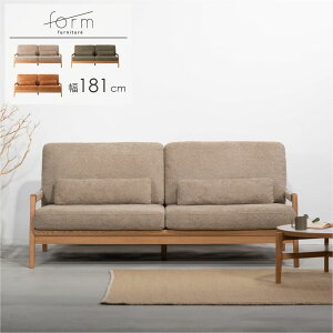 天然木のフレームとファブリックの風合い、柔らかなカーブを描いたデザインがやさしい風合いを作り出すソファ。大人3人が余裕をもって座れる幅181cmのワイドソファ。高さは控えめの69.5cmでお部屋に圧迫感をつくりません。ま