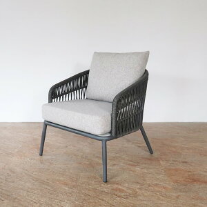 商品の特徴 1人掛けソファ、アームチェア、屋外ソファ リゾートの雰囲気を感じられる編み込みの座面、それを支える脚はスタイリッシュなブラック。 細部までこだわりのあるデザインに仕上がっています。 アーバンリゾートにふさわしい