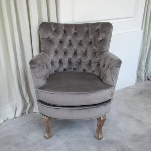 小ぶりな一人掛けソファ。単体でも絵になるフォルム。他のデザインのソファと組み合わせても相性良しのすぐれもの。場所を取らないコンパクトな一人掛けソファです。背中のボタン留めデザインがアクセント。小ぶりながら存在感があり